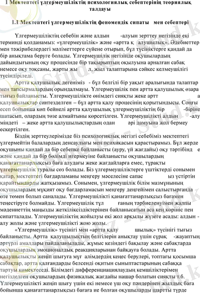 КІРІСПЕ . . . 1 БӨЛІМ. МЕКТЕПТЕГІ ҮЛГЕРМЕУШІЛІКТІҢ ПСИХОЛОГИЯЛЫҚ СЕБЕПТЕРІНІҢ ТЕОРИЯЛЫҚ ТАЛДАУЫ