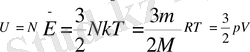 Бiрақ, газ жұмысы бұрынғысынша сандық түрде бастапқы және соңғы күйлердегi p 1 және p 2 қысымдарына тең AV 1 және AV 2 кесiндiлерiмен және P -ның - V ға байланысты графигiмен шектелген фигураның ауданына тең болады. Идеал газдардың iшiнде өзiнiң физикалық қасиеттерi бойынша қарапайым болып табылатын газ бiр атомды газ (гелий, неон, аргон және т. б. ) . Бiр атомды газдың iшкi энергиясы. . Идеал газдың барлық iшкi энергиясы оның молекулаларының қалыптаспаған қозғалысының кинетикалық энергиясы болып табылады. Массасы m бiр атомды газ үшiн ол бiр атомның орташа кинетикалық энергиясының E = 3kT/2 жалпы атомдар санына N = mN a /M көбейткенге тең Қаралып отырған процесстің қиындауынан ішкі энергияның кеңею құбылысы жүреді. Сонымен, газды ағынның өту кезіндегі зерттеуде, химиялық процесстермен, диссоциациямен, ионизациямен немесе ядролык реакциямен еріп жүретін, ішкі энергияны анықтауға арналған формулаларға, қосымша анықтаушы көрсеткіштер енгізіледі. Құбылыс саласындағы техникалық жылудинамикасының зерттеуінде, ішкі энергияны молекулярлы көзқараспен, кинетикалық және потенциалды қосындысы ретінде қарастырады, дененің молекулаларының өзара әрекеттігі мен қалай болса солай қозғалысы себепші болады. Газ энергиясының басқа түріне ие болуын есепке алмайды, себебі, қаралып отырған техникалық жылудинамикасындағы температураның, газ жағдайындағы өзгеру эсерін ескермейді. Ішкі энергия u тек қана температураның функциясы болса, онда эксперимент кезінде, газ температурасының өзгеруі білінбеуі керек. Бірақ, көп емес, ол бар және оны Джоуль-Томсон эффектісі деген атпен аталады. Қандай газ болса да, Джоуль-Томсон (Дж) эффектісі идеалды газдардан, оның ауытқуы өлшемімен есептелінеді. Идеалды газдардың техникалық жылу динамикасындағы есептеулерінің көбісінде, потенциалды энергиясының молекулалары өзара әрекеттегісі Р және V байланыстығын қарастырмайды, ішкі энергия - тек қана температураның (функциясы) ретінде айтылады. Ішкі энергия (U) системаның жалпы энергия
