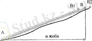 Есептелген ұзындықты D жердің бетімен берілген бағыт бойынша жарық қашықтық өлшеуіш, лента немесе рулетка арқылы екі рет АВ мен АВ салады (1-сурет) . Сол екеуінің ортасы В нүктесін жерде белгілеп, қазықпен бекітеді. АВ сызығының ұзындығы D жоба қашықтығы болып табылады.