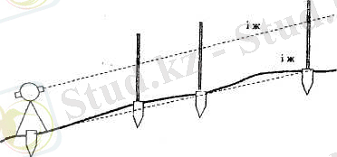 Жоба еңістігін жерге шығару теодолитпен немесе нивелирмен орындалады. Теодолитпен шығарғанда, теодолитті жоба еңістігі шығарылатын сызықтың басқы нүктесіне қойып, дүрбіні сызықпен бағыттайды. Осыдан кейін жоба еңістігін көлбеу бұрышқа айналдырады, іж=tg ж. Алынған бұрышты вертикаль дөңгелектің санағына салып, дүрбіні сол бұрышқа сәйкес деңгеймен бекітеді. Аспаптың биіктігін рулеткамен өлшеп, оны рейкада белгілейді. Содан кейін біртіндеп еңістік шығаратын сызықтың бойымен рейка қоятын нүктелерді белгілейді (3 сурет) . Әр нүктеде жіптік тордың горизонталь сызығы мен рейкадағы белгі сәйкес келгенше рейканы вертикаль қозғалтып, рейка табанының деңгейімен қазық бекітеді. Қазықтың бойымен жіп тартады. Тартылған жіптің бағыты жоба еңістігінің бағытымен сәйкес келеді.