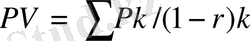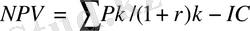 Мысалы, мынандай болжам жасалынды, n жыл ағымында инвестиция (/с) жұмсалынады, ол бойынша жылдық табыс көлемі Р1, Р2, . . . Рn. . Дисконтталған табыстардың жалпы жиналған мөлшері (PV) және таза келтірілген құн (NPV) сәйкесінше келесі формулалармен есептелінетін болды: