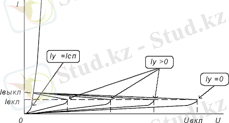 1. 3 Тиристордың волт-амперлік сипаттамасы (ВАС)1-суретте тиристордың ВАСы берілген. Iy=0 U>Uвкл тиристор арқылы өтетін өте аз болады ( I < I вкл ) .