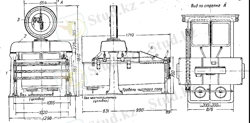 - циферблатты головкадан 3; сүт құйылатын екi жүк қабылдағыш сиымдылықтан 4;