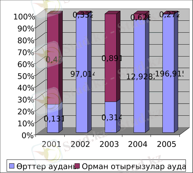 Сурет 1 Шығыс Қазақстан орман қорларындағы жалпы ормандардың көлемі