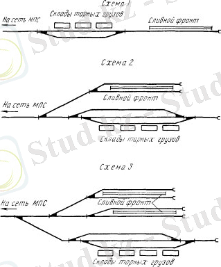 Ең қалаулы Темір жол жүк мұнай Тұйықтары (түсіру) жоғары немесе резервуарлық паркі ауданы төмен (тиеу) бөлімін болуы. Танк шаруа қожалығының аумағында темір жолдар қарапайым болуы тиіс және көлденең тиеу немесе түсіру кезінде кездейсоқ қозғалысы маршруттарын алдын алу үшін. Жол тұйығы үшін бөлінеді(сур. 2) :