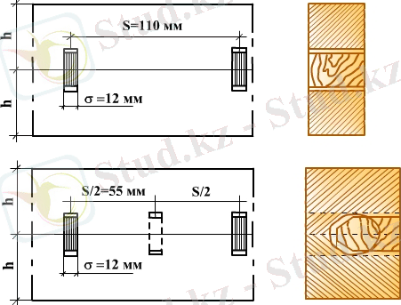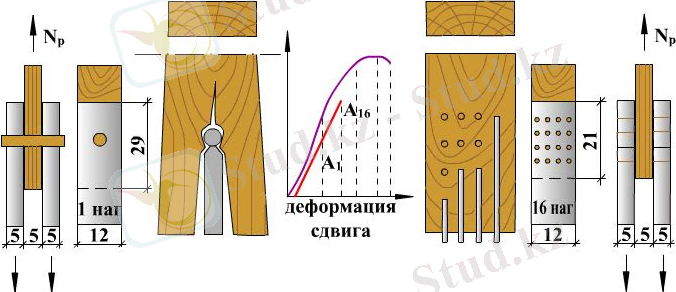 3. Шегелер де сына сияқты қозғалуға қарсылық ету үшін жұмыс істейді. Шеге диаметрі 6мм-ден аспайды, сондықтан олардың көтергіштігі күш бағытына және талшықтардың бағытына байланысты болмайды.