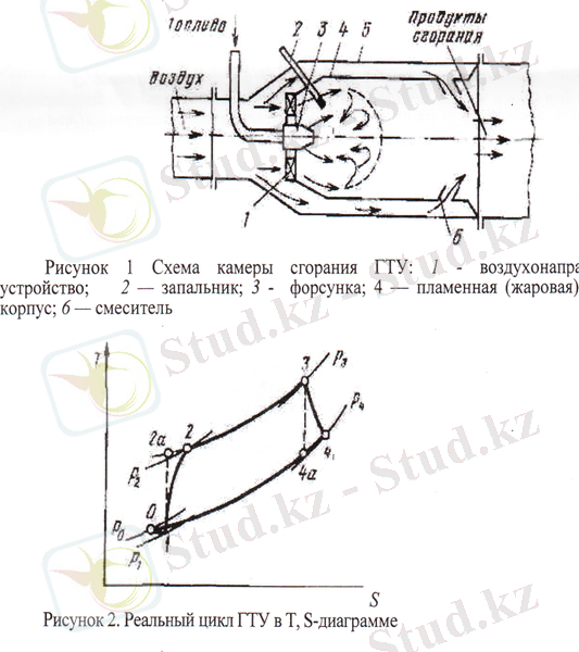 2-сурет. T, S диаграммадағы ГТҚ-ның нақты циклы