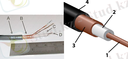 Коаксиалды кабель құрамы 2-суретте келтірілген: 1 - ішкі өткізгіш,
