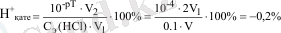 Титрлеуді рН = рТ болғанда аяқтайтын болса, онда титрленбей қалған сутек иондарының концентрациясы келесі теңдеумен анықталады С Н+ =10 -рТ