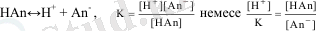 [НАn] әлсіз қышқыл болғандықтан, оның концентрациясы қышқылдың жалпы концентрациясына тең, ал [Аn-] тұздың концентрациясына тең.