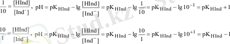 Индикатордың иондану константасының К НInd мәнін біле тұрып, оның түсі өзгеретін рН ауданын анықтауға болады. Индикатордың молекула және ионданған түрлерінің қатынасы немесе тең болғанда индикатор түсінің өзгергендігін адам көзбен байқауға болатындығы тәжірибе нәтижесінде анықталған. Осы мәліметтерді ескерсек, келесі түрде теңдеуді жазуға болады.