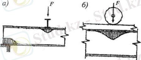 Сурет 13. Жергілікті кернеулер: а - шоғырланған жүктемелер түскен жерлерде; б - крандоңғалағының астында.