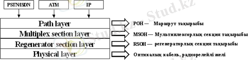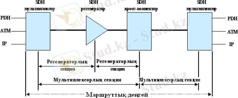 Телекоммуникациялық технологияларды әдетте көпдеңгейлі модель арқылы түсіндіреді. SDH технологиясын да транспорттық желілік деңгей түрінде көрсетуге болады, олар желі топологиясына тікелей қатысты болады (1. 6сурет) .