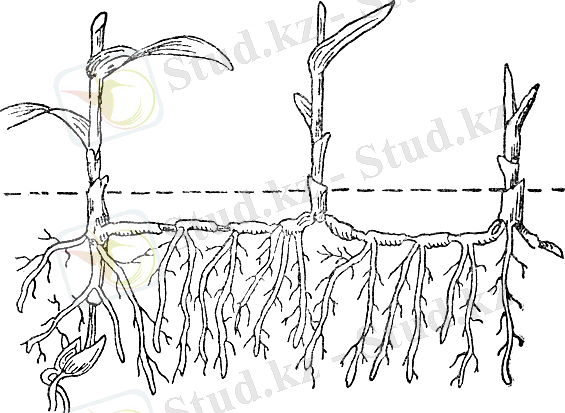 Көгентамырлар - тік өскен қысқа тамырлардан көлденең тамырлар өсіп жайылады да онда бүршіктер салынып, содан жаңа өркендер өсіп шығады;