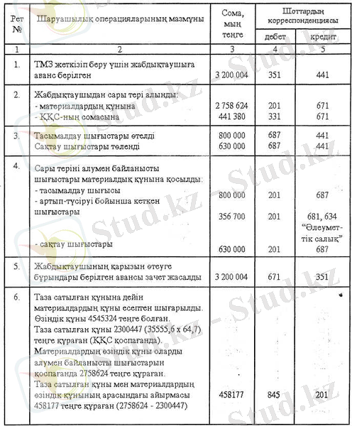 Енді біз осы операциялар бойынша жасалатын шоттар корреспонденциясын қарастырып көрейік.