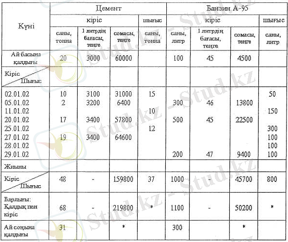 Цементтің ай соңына қалған қалдық құны - 100203, 05 теңге құраған (31 тонна х 3232, 35теңге немесе 60 000+159800-119596, 95) .