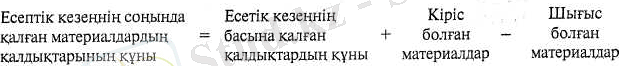 Есептік кезеңнің соңына материалдардың қалдықтарының құнын анықтау үшін есептеу жолымен шығарылатын формуланы пайдалану мүмкін: