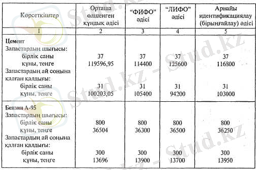 Енді біз запасты бағалаудың әртүрлі тәсілдерін салыстырып көрейік: