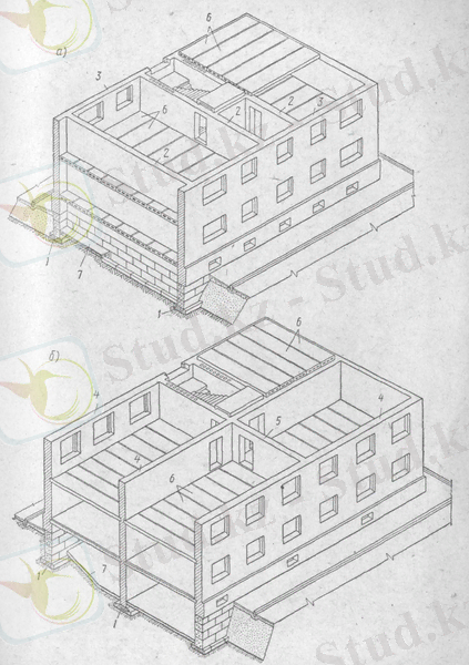1. 2 сурет. Күштеу көтеруші сыртқы және ішкі қабырғалы ғимараттардың желілері: