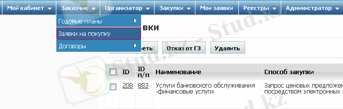 Жоғарыдағы 1-суретте көрсетілгендей сатып алуға тапсырыс жасау үшін үстінде аталып өткен командаларды орындаймыз.