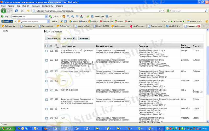 Бұл кестенің суреттен ерекшелігі командалардың ішіндегі артық батырмалары көрсетілмей, тек сатып алуға тапсырыс беру мен жою батырмалары сақталған.