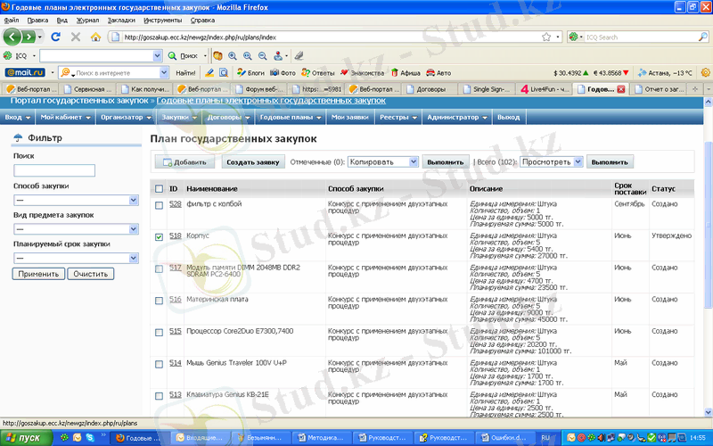 Қаржылық есептік көрсеткіштер көп болғандықтан, есеп беруді тек кестелермен толтырмау мақсатымен көп мәліметтерді қосымшаға қостым. Сатып алуға тапсырыс жасау «сатып алуға тапсырыс» менюінде көрсетілген. Сонымен қатар біз тапсырыс берген кезде ол мемлекеттік сатып алуды ұйымдастырушының жұмыс істейтін жерінде автоматты түрде «Тұтынушыардың тапсырыстары» деген бөлімге тіркеледі. Сол арқылы мемлекеттік электронды сатып алу жүйесі жүзеге асырылады.