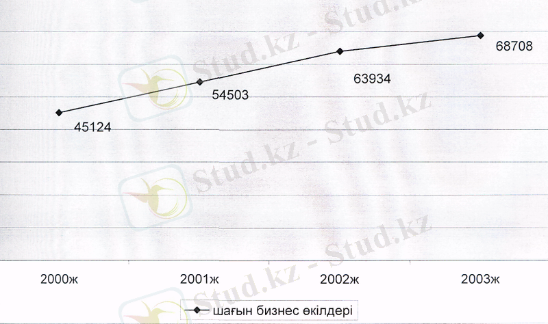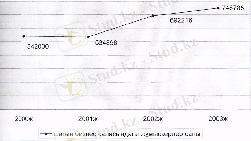 Сызба 2 - 2000-2003 жж. аралыгындағы шағын бизнес саласындағы жұмыскерлер санының өсу қарқыны* (Қазақстанның жыл сайынғы Стат. мәліметтері. ҚР Статистикалық Агенттігі. )