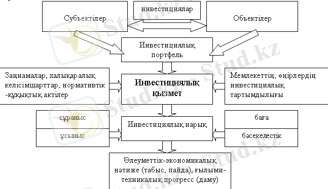- Қазақстан Республикасының қазіргі даму жағдайындағы инвестициялық үдеріс қатысушыларының экономикалық қарым-қатынасы.