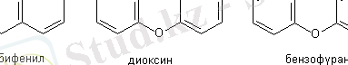Молекуласында оттегінің бір атомы бар галогенді токсиканттарды бензофурандар деп, екі атомы барларын - диоксиндер деп, ал егер заттың құрамында оттегі болмаса - бифенилдер деп атайды (сурет) . Галогендер (хлор немесе бром) атомы бензолды сақиналардың құрамындағы сутегінің бір немесе одан да көп атомдарының орын алмастырады.