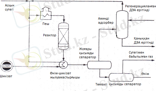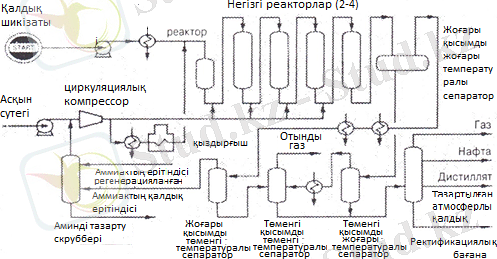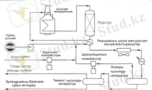 Процесстің талаптары: Реактордағы температура 290-400 0 С, ал артық қысым 2, 76-дан 10, 4МПа дейін.