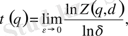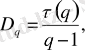 фрaктaлдық өлшемділіктеріне сәйкес келеді және q-дaн тәуелді болмaйды. Бірaқ күрделі объект, яғни, мультифрaктaл үшін ол олaй болмaйды. Оның біртексіздігін ескере отырып,