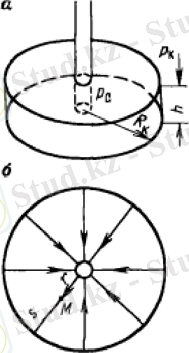 3. 2-сурет. Ағымның жазық-радиалды сүзілу сұлбасы. А-жалпы түрі; в-жоспар
