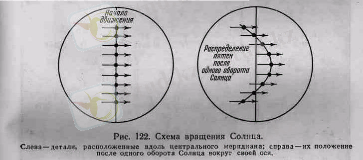 Күннің өз өсі бойымен айналуы оның бойымен планеталардың айналу бағытында (демек Жердің өз осі боймен айналу бағытында да), Жер орбитасының жазықтығына (эклиптикаға) 7 0 15’бұрышпен еңкейген жазықтықта болады.