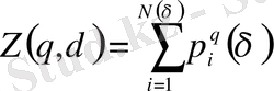 p i ( δ ) - жиыннан кездейсоқ таңдап алынған нүктенің i ұяшығында болу ықтималдылығы. Кеңейтілген фракталдық өлшемділіктер спектрі D q келесі қатынаспен анықталады