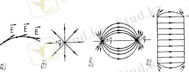 Фарадей өpicтi көрнекі турде көрсету ушін оны күш сызықтары арқылы кескіндеуді ұсынды. Бул сызық өpicтiң әрбір нүктeciндегі кернеулік векторы оған жанама болатын сызық болып табылады (4-сурет) . Егер өзгедей зарядтар болмайтын болса, күш сызығы он зарядтан басталып шексіздікке кетеді. Егер өзгедей зарядтар болмайтын болса, күш сызығы шексіздіктен басталып тepic зарядқа келіп бітеді. (аяқталады. ) . Әр аттас зарядтар пары болатын жагдайда күш сызығы зарядтан басталып тepic зарядқа келіп аяқталатын болады.