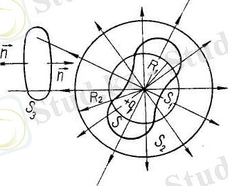 Егер де бет зарядты камтымайтын болса (5-cypeттeгi S В - 6eтi), онда бетке eнeтiн (кipeтiн) және одан шығатын күш сызықтарының саны бірдей болады, ал тұйық беттен өтетін толық ағын Ф Е =0.
