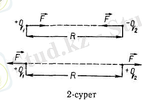 Вакуумдағы нүктелік eкi зарядтың өзара әсерлесу күші заряд шамаларының көбейтіндісіне тура пропорционал, ал олардың арақашыктығының квадратына кepi пропорционал және де осы зарядтардың аралырын қосатын түзу сызықтың бойымен бағытталған болады. Бұл анықтама 2-суретте бейнеленіп мына формуламен өрнектеледі: