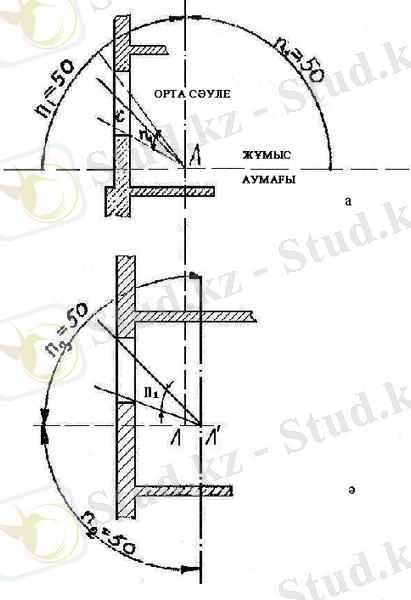 Н - терезенің жоғары жағының шартты жазықтықтан көтерілуі, м; Ж - қабырғаның сыртқы жағынан жұмыстық нүктеге (ЖН) дейінгі арақашықтық, м; Ұ - бөлменің ұзындығы, м; Т - бөлменің тереңдігі, м.