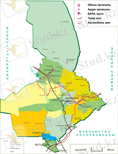 Сурет 1. Мақтаарал ауданы, орталық қаласы - Жетісай,