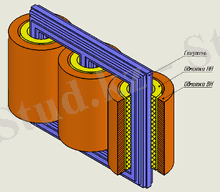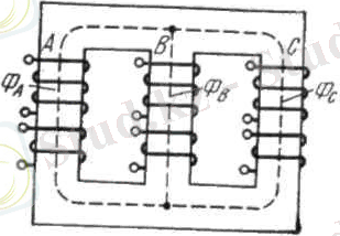 Барлық бірдей бірфазды трансформатордың біріншілік және екіншілік бір стерженьде орналасқан, ал екі стерженьде ешқандай орамсымдары жоқ. Жалпы үшфазды желіде трансформаторлардың екіншілік стерженінен ағатын магниттік ағын 0 - ге тең. Егер осы үш трансформаторды орамсымы жоқ стерженьдерді жақын орналасатындай етсек, онда бұл 3 бос стерженьді біреу етіп біріктіруге болады. Фазалық ығысуы периодтық 13 тең трансформатордың магниттік ағындары 0 - дік стерженьдері арқылы біріктіріледі. Себебі біріктірілген стерженнің магнит ағыны Ф = 0, олай болса орамсымдары жоқ стерженнің керегі жоқ. Оны төмендегі сұлбадағыдай етіп жинайды.