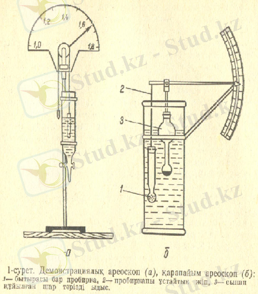 Тәжірибелерді демонстрациялау техникасындағы бұл кемшілікті болдырмау үшін кейбір мұғалімдер кәдімгі приборлардан өзгеше приборлар мен қондырғыларды өз практикасына біртіндеп өндіріп жүр. Мәселен, тығыздықты анықтау үшін 1, а және б суретте көрсетілген прибормен пайдаланады, оның шкаласы үлкен дөңгелекке салынған, бөліктері мен ірі цифрлары алыстан жақсы көрінеді. Термометрді термоскоппен алмастырады, онда температураның төмендеуі мен көтерілуін дәл білудің қажеті шамалы, тек өзгеруін (бұл мақсат үшін термопара пайдаланылады) анықтаса болғаны.