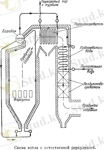 Қарапайым циркуляциялы пештерде булану контуры арқылы судың қозғалысы столбылардың әртүрлі жиілігінің арқасында қозғалыс пайда болады: