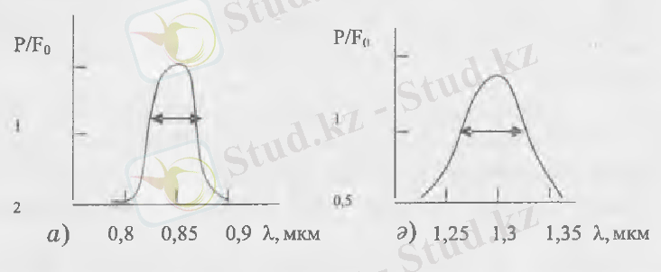 3. 3 суретте СИД сәуле шығаруының спектральдық таралуы көрсетілген. Әдетте, беттік сәуле шығарушы СИД үшін сәуле шығару сызығы шамамен мкм болғанда енділігі 0, 04 мкм - ге дейінгі гаусстық формада, ал мүйістік (торценого) сәуле шығарушы үшін мкм болғанда енділігі мкм -ге дейінгі гаусстық формаға ие болады.