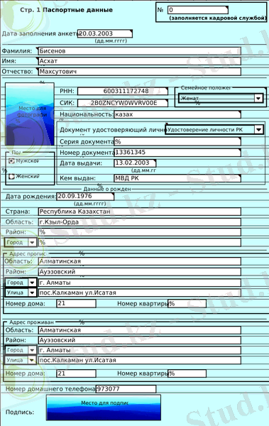 Өндірістік тәжірибе өткен орын: Жамбыл облысы ауданы . Т. Рысқұлов Салық Басқармасы»
