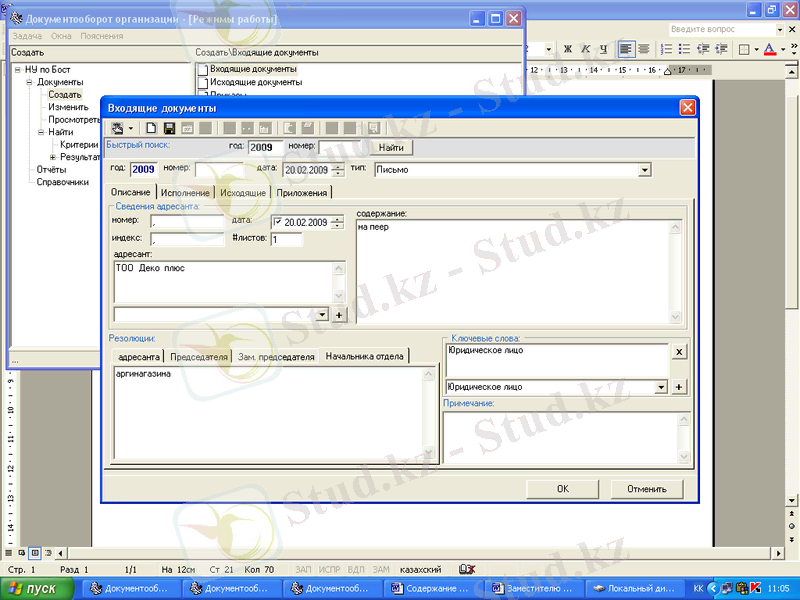 Өкілетті органдардың кіріс және шығыс карточкасы