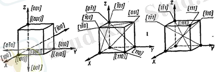 Сурет 7-де мысал ретінде кубтық кристалдың негізгі бағыттары мен белгіленулері келтірілген.