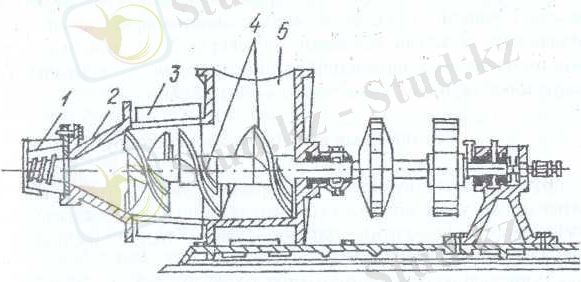 1-мүштік; 2-престің басы; 3- престің қабы; 4- шнектің қалақтары (таспалары) ; 5-балшық қабылдағыш (воронка) .