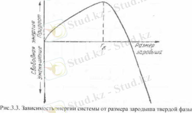 Сүр. 2. Қатты фазаның ұрық мөлшері жүйе энергиясына байланысы Кристалдану механизмі 3 суретте көрсетілген.