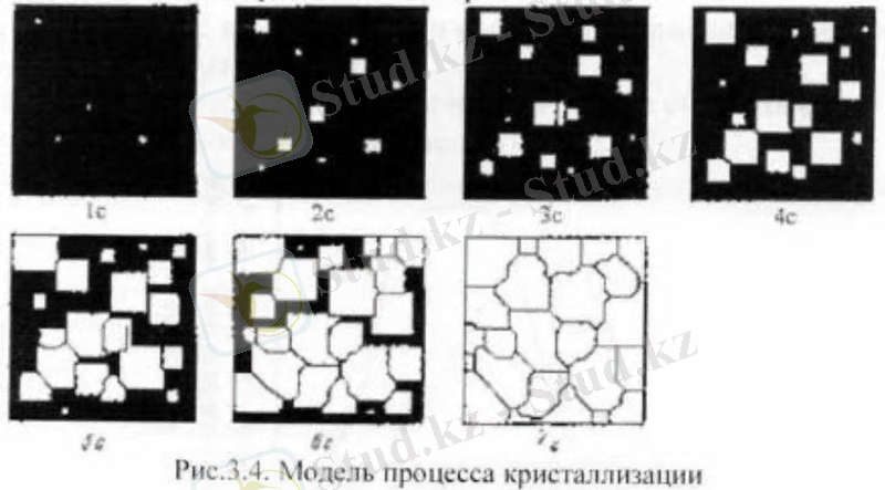 Сүр. 3. Кристалдану үрдісінің моделі Бастапқы фазада кристалдану орталықтары