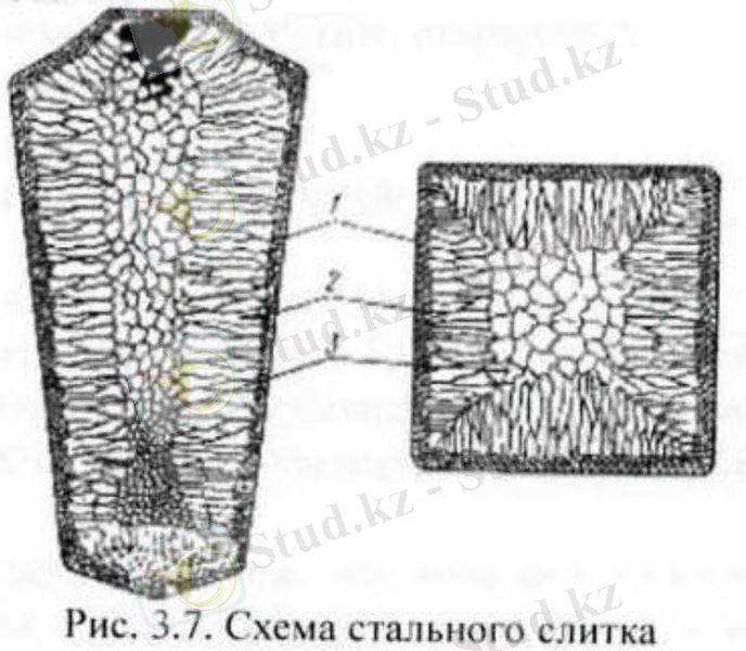 Чернов Д. К. болат кесегінің сызбасы 4 суретте берілген. Кесек үш аймақтан құралады: